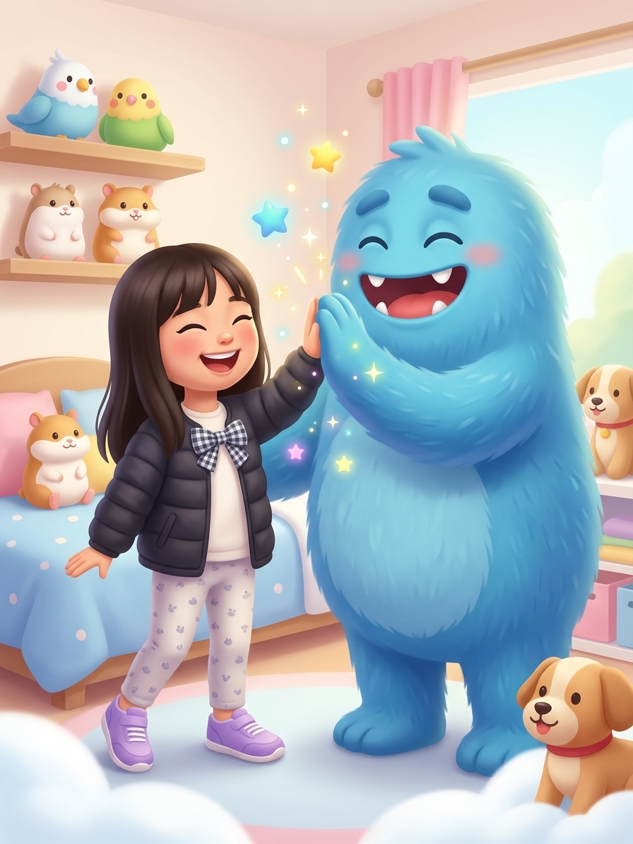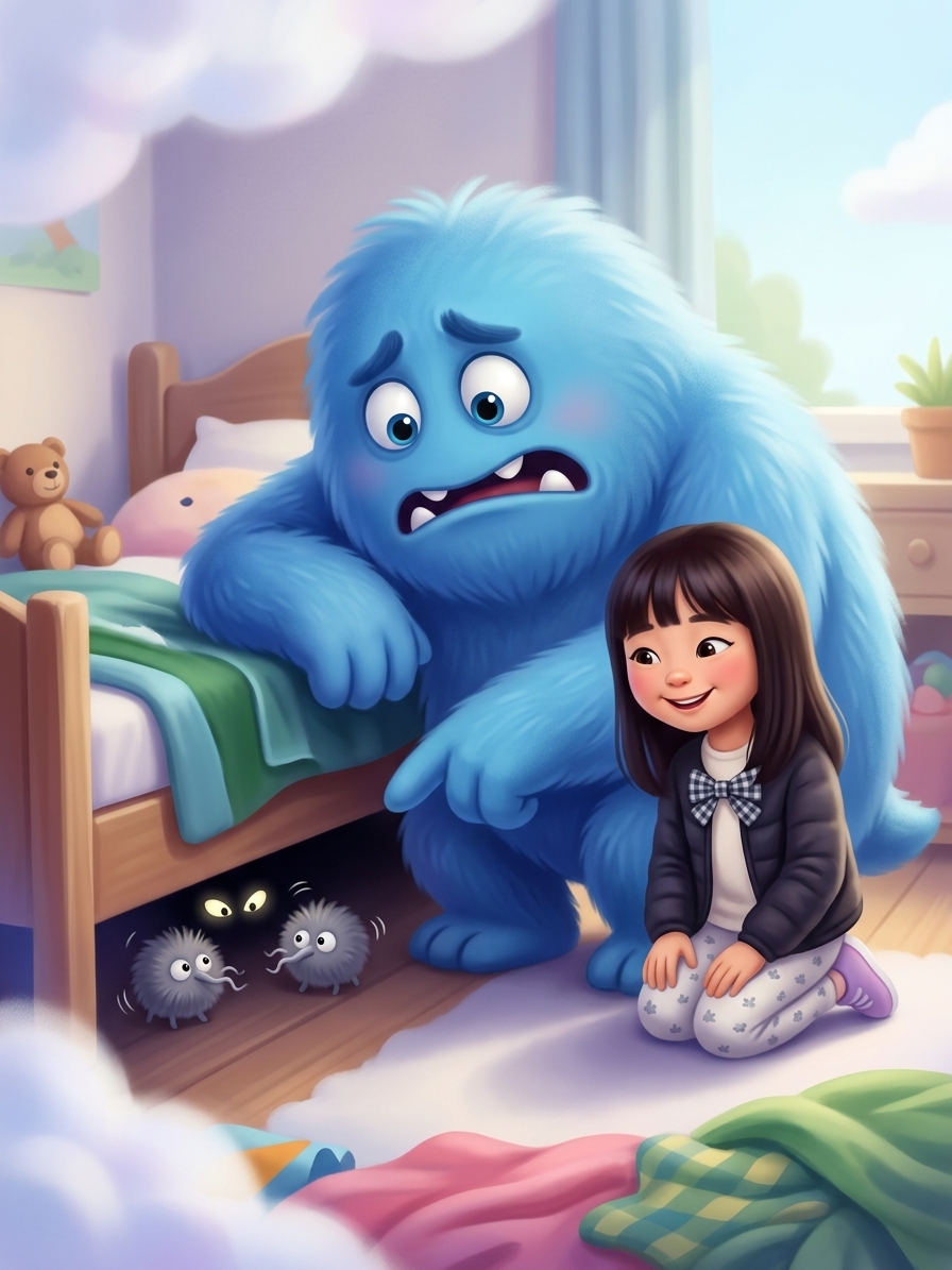 Yuma was a magical little girl who loved all kinds of animals, from galloping horses to tiny hamsters. One night, a giant, fuzzy, blue monster named Grog popped out of her closet to do his job and scare her. But instead of roaring, Grog froze in his tracks, his knees knocking together, and let out a tiny, squeaky gasp.